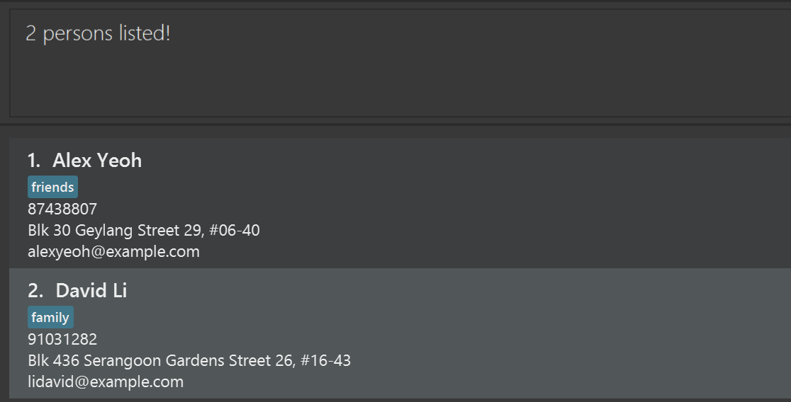 AddressBook Level 3 (AB3) is a desktop app for managing contacts, optimized for use via a Line Interface (CLI) while still having the benefits of a Graphical User Interface (GUI). If you can type fast, AB3 can get your contact management tasks done faster than traditional GUI apps.
